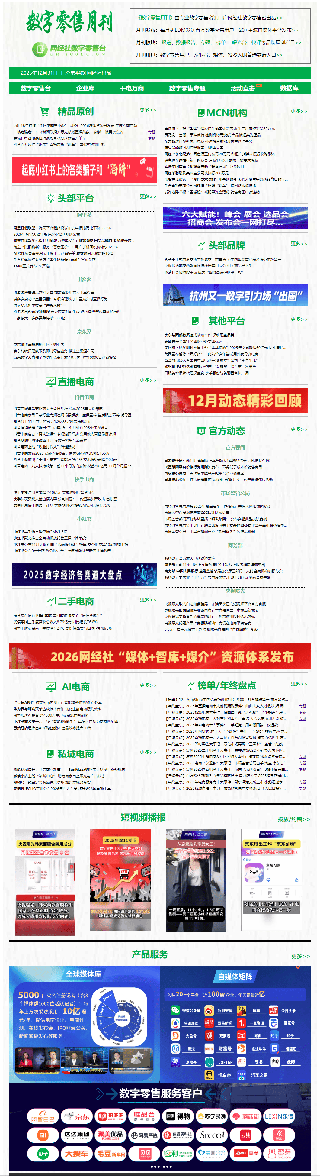 2025年12月,数字零售范畴又有哪些事?以下为数字经济新 #网经社 旗下数字零售台为您带来12月数字零售各赛道最新动态回首。